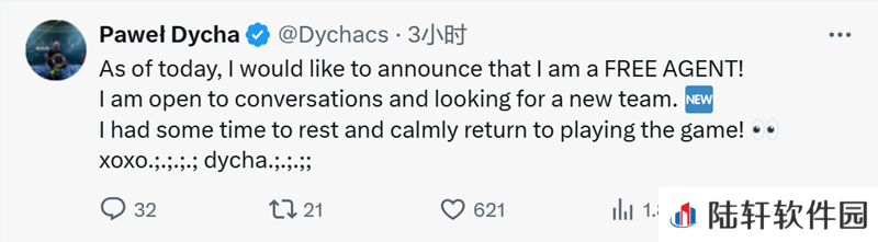 不过他的休假期已经提前结束,dycha现在表示,在经过一段时间的休息后,他正在寻找加盟一支新战队。