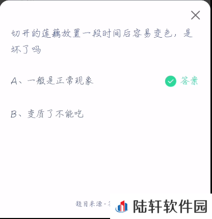 切开的莲藕放置一段时间后容易变色,是坏了吗?-2021支付宝蚂蚁庄园9月11日每日一题答案(2)