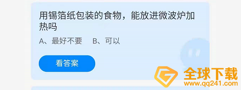 以上就是圈圈下载游戏小编为你带来的2021《支付宝》蚂蚁庄园9月12日(2)用锡箔纸包装的食物,能放进微波炉加热吗?每日一题答案的全部内容,更多精彩游戏资讯尽在圈圈下载游戏网。