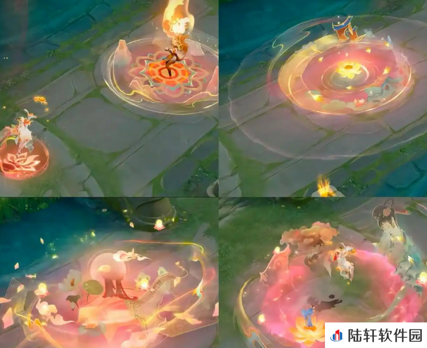 技能效果也是美轮美奂:一技能,西施会掷出法器,召唤金玉仙录法阵,莲花灯围绕敌人,十分仙气十足。二技能,西施抛出能量球,触发时会展示出山石、荷塘夜景的美丽画面,飞鸟环绕,十分诗意。三技能则强化自身,四周浮现云雾、花瓣、莲花灯和仙桥景象,仿佛步入了一个梦幻的仙境。