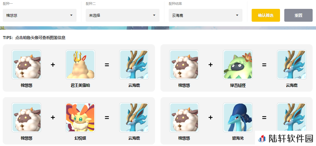 其中幻悦蝶又是野生、等级不高就能够大量捕捉的,所以可以很容易配出想要的云海鹿。