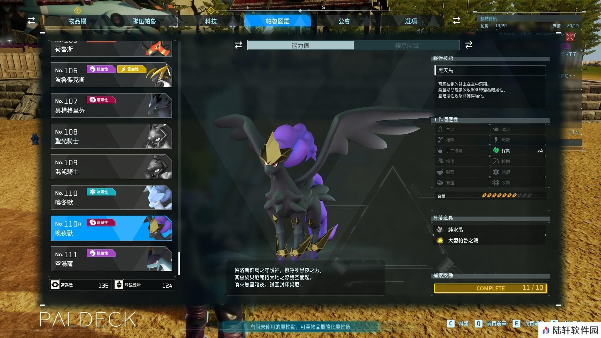 雷冥鸟也是非常强大的配种母代,如果有准备很好的雷冥鸟的话,完美唤夜兽唾手可得。