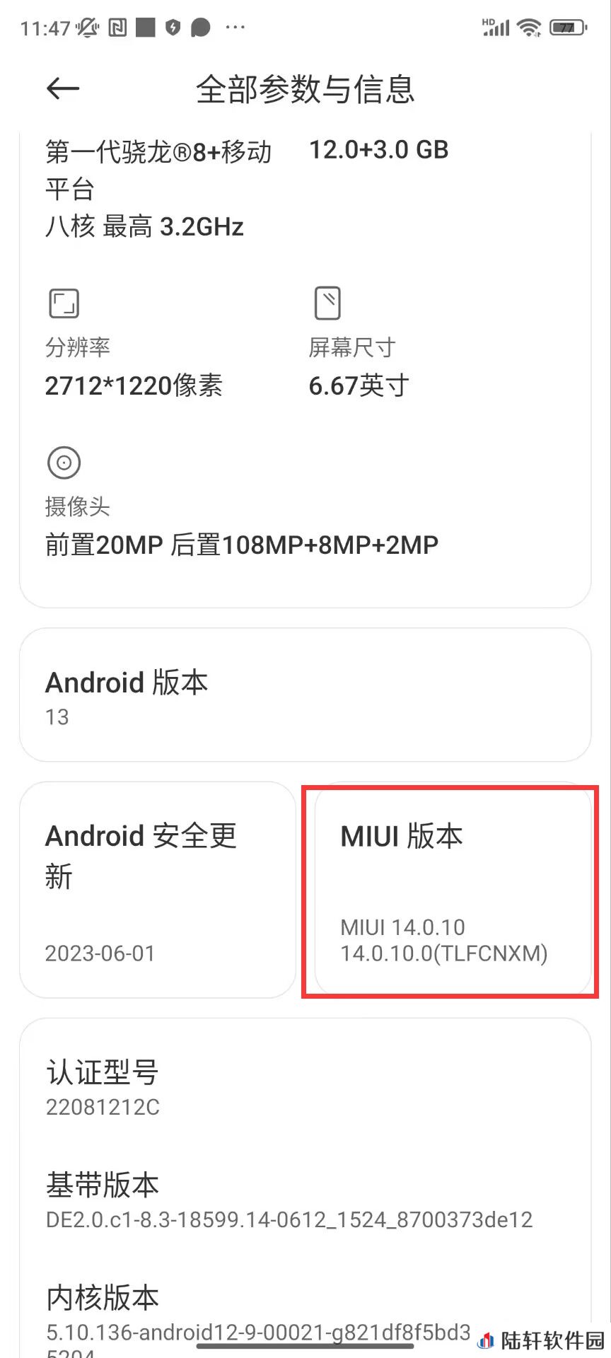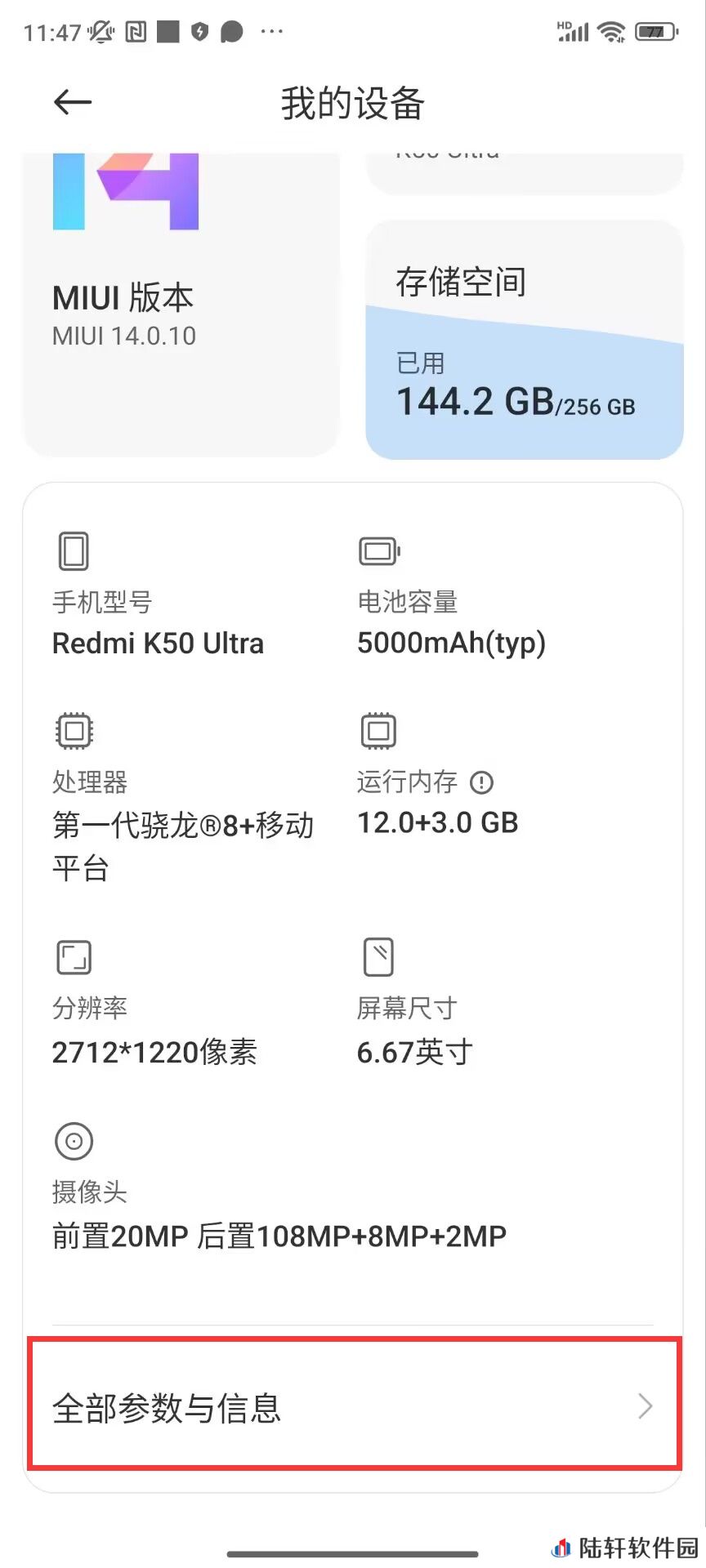 1、小米机型打开设置一我的设备一全部参数与信息;