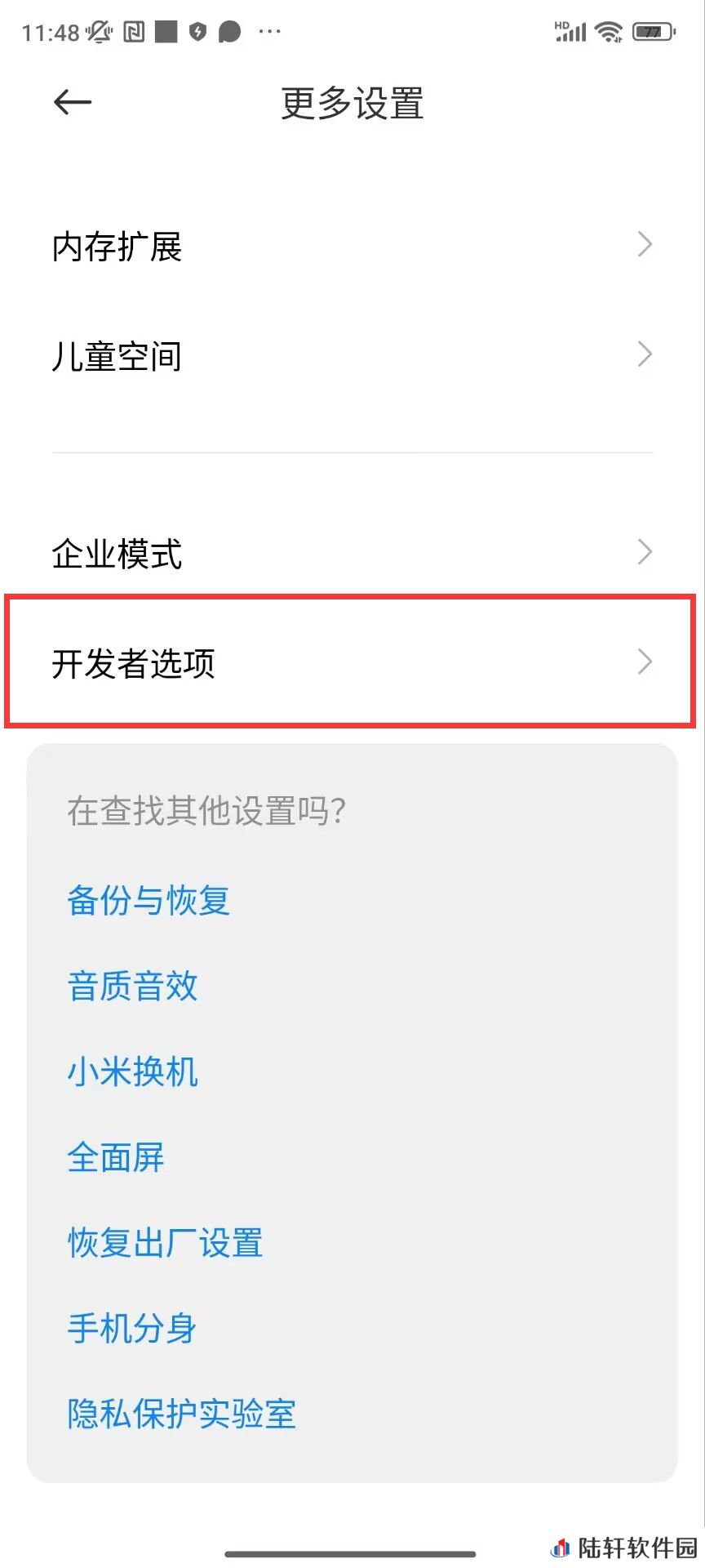 4、打开开发者选项页面;